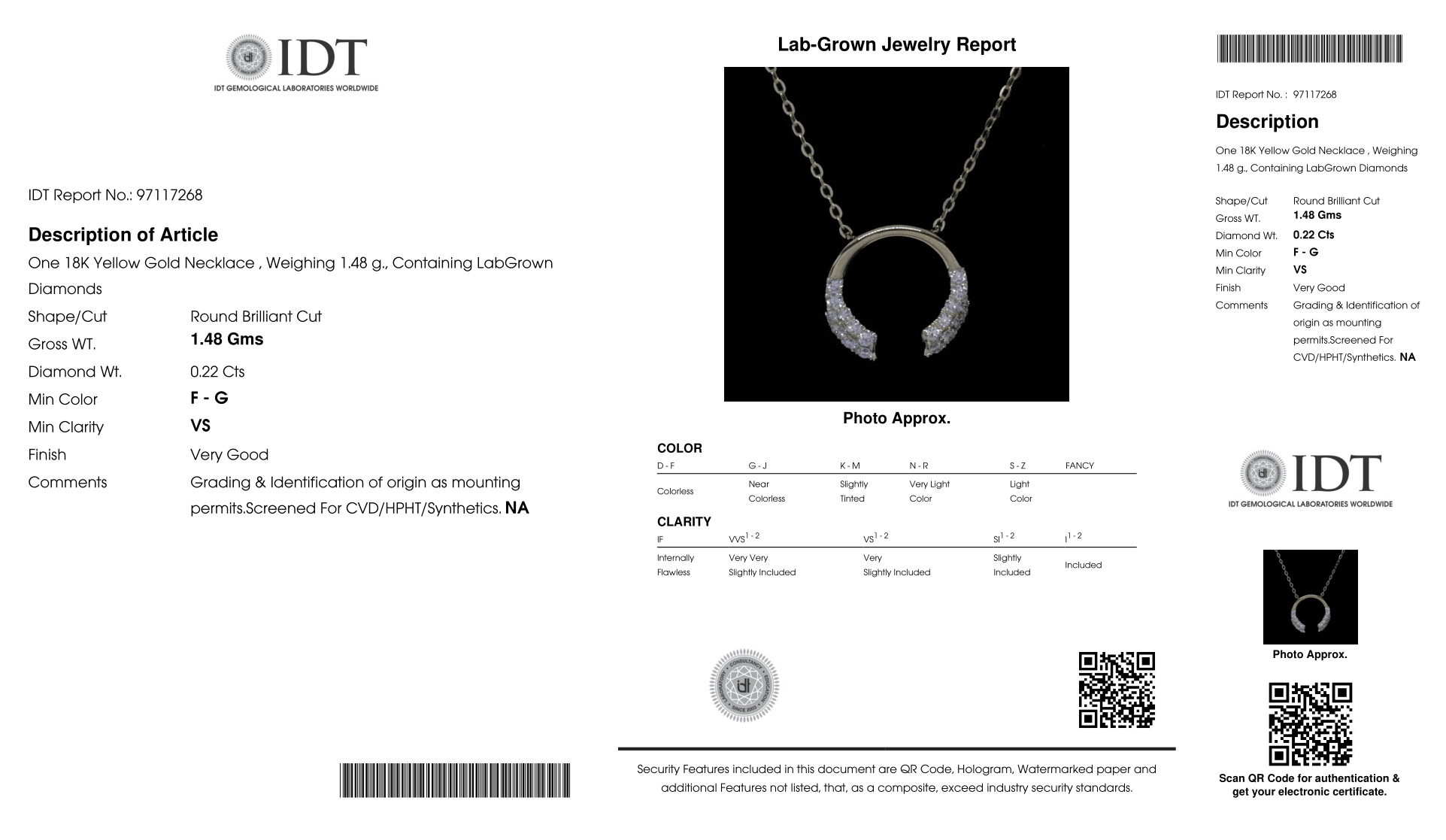 قلادة واحدة من الذهب عيار 18 قيراطًا والألماس المزروع في المختبر