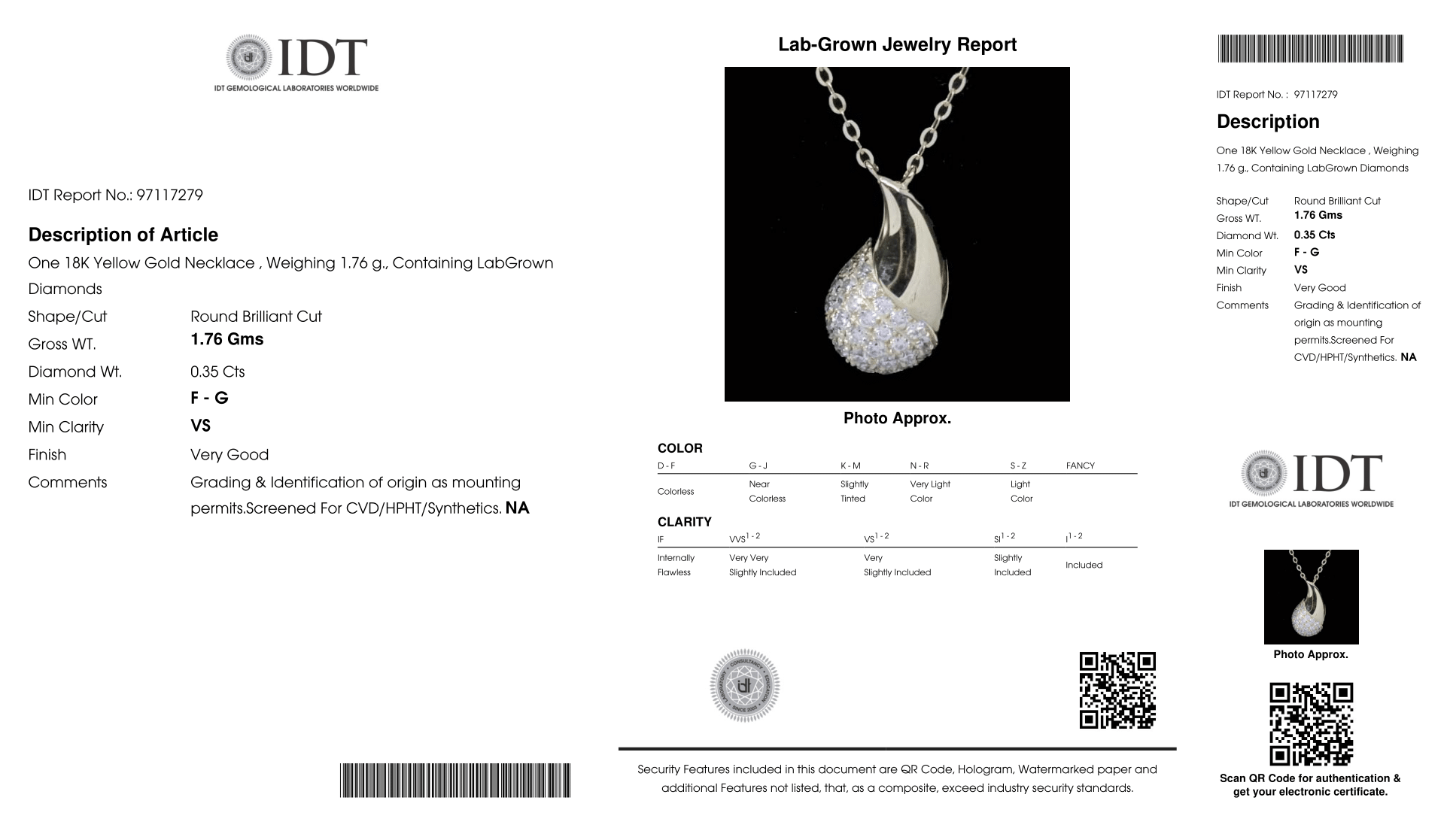 قلادة واحدة من الذهب عيار 18 قيراطًا والألماس المزروع في المختبر